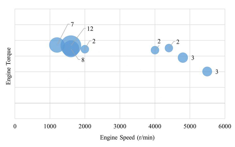 村田ら(1)による発表で、同社の直噴水平対向エンジンにおいて、最小限の改造で水素エンジンとするため必要な改造要素について実験的な検討を行っている。主な検討項目としてオイル起因のプレイグニッション対策、ブローバイによるクランクケース内水素濃度管理、各種摺動部の摩耗対策である。一つ目のプレイグニッション対策として、ピストン張力やリングの変更による低オイル消費(LOC)化、カルシウム含有量の少ないオイルへの変更を行った。回転数やトルク違いの運転条件を設定して測定を行ったところ、低回転から高回転の高負荷部分でプレイグニッションが発生する傾向にあった(図1)。それに対して低LOC化対策を行った場合、中速域におけるプレイグニッションが抑制された(図2)。そのエリアのプレイグニッションにはオイルが関与していることが示唆された。また、カルシウム低減オイルを使用した場合、1200rpmにおけるプレイグニッションが発生しなくなった(図3)。5500rpmにおいては依然としてプレイグニッションが発生したが、これはスパークプラグ近傍の温度が700℃を超えていたことから温度起因であると考察している。この点については、後の質疑でプラグ近傍の温度かそれ以外も含めたものか、といった議論があった。