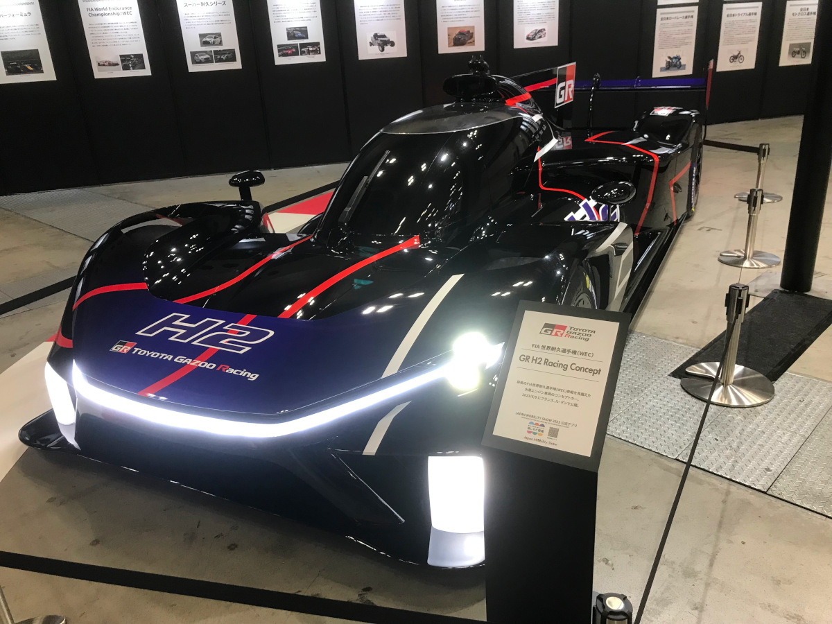 - 2輪、4輪の様々なレース車両(実物またはレプリカ)が展示されている。写真はホンダ製パワーユニットを搭載するオラクル・レッドブルレーシングRB19(2023)、世界耐久選手権(WEC)参戦を見据えたトヨタGR水素エンジン車両、Super GT GT300クラスSUBARU BRZ、Moto GP Repsol HONDA RC213V。モータースポーツエリアの一角にはグランツーリスモ体験コーナーもあり、本物のレーシングマシンを見ながらグランツーリスモも楽しめる。(飯島)