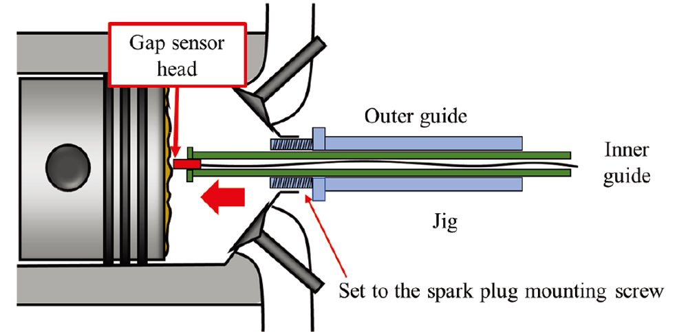 本研究では、異なる運転モードで実験し、点火プラグ孔から測定用治具を挿入することでピストン冠面上のデポジットの厚さを計測する手法を開発している(図5)。