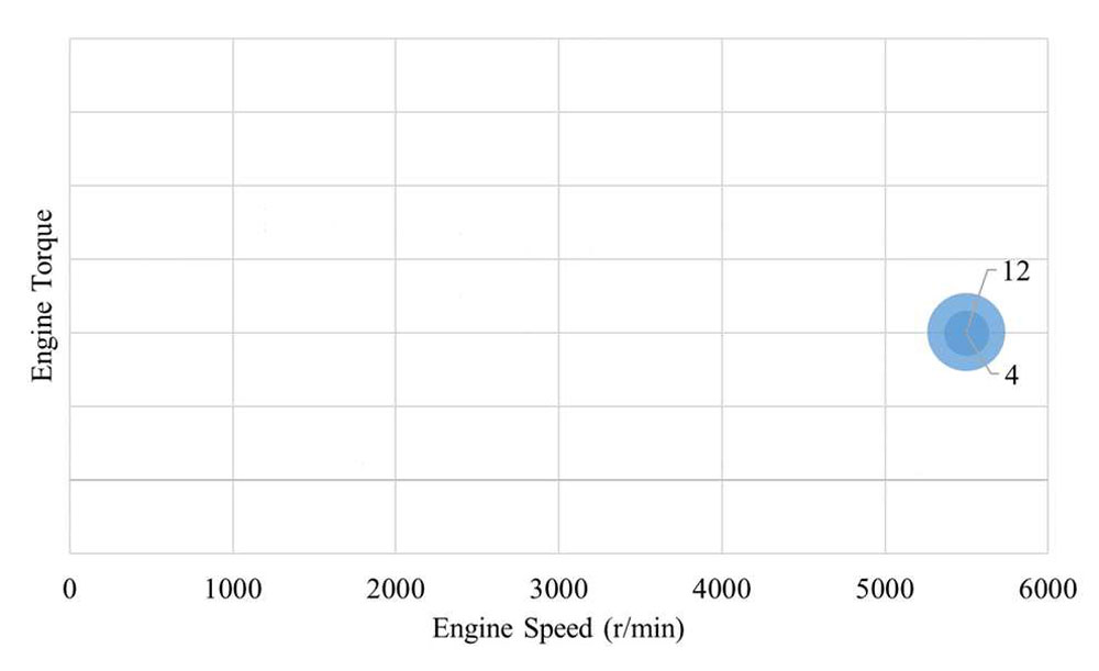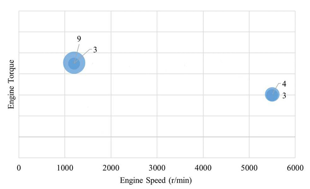村田ら(1)による発表で、同社の直噴水平対向エンジンにおいて、最小限の改造で水素エンジンとするため必要な改造要素について実験的な検討を行っている。主な検討項目としてオイル起因のプレイグニッション対策、ブローバイによるクランクケース内水素濃度管理、各種摺動部の摩耗対策である。一つ目のプレイグニッション対策として、ピストン張力やリングの変更による低オイル消費(LOC)化、カルシウム含有量の少ないオイルへの変更を行った。回転数やトルク違いの運転条件を設定して測定を行ったところ、低回転から高回転の高負荷部分でプレイグニッションが発生する傾向にあった(図1)。それに対して低LOC化対策を行った場合、中速域におけるプレイグニッションが抑制された(図2)。そのエリアのプレイグニッションにはオイルが関与していることが示唆された。また、カルシウム低減オイルを使用した場合、1200rpmにおけるプレイグニッションが発生しなくなった(図3)。5500rpmにおいては依然としてプレイグニッションが発生したが、これはスパークプラグ近傍の温度が700℃を超えていたことから温度起因であると考察している。この点については、後の質疑でプラグ近傍の温度かそれ以外も含めたものか、といった議論があった。