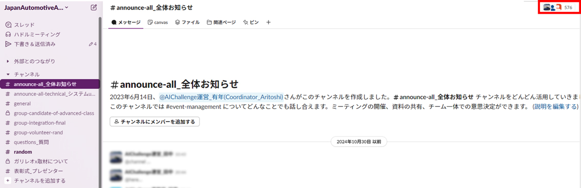 過去大会参加者を含めて、500名以上が参加しているチャンネルに採用情報等を掲載可能です。